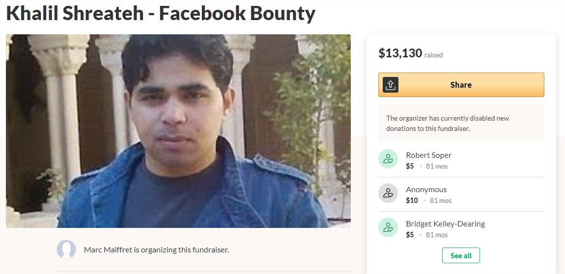 First, a global campaign started by Marc Maiffret http://www.gofundme.com/3znhjs, it doesn't consider to be a Facebook bounty. but was a result after i hacked Mark zuckerberg profile .