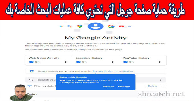 ممكن لأي شخص يمتلك جهازك من الوصول الى كافة سجل نشاطاتك عبر الدخول الى هذه الصفحة، ولكن يمكنك بدءا من الان اضافة حماية لهذه الصفحة بحيث يتم طلب التأكيد من ملكيتك للحساب قبل الوصول لهذه الصفحة