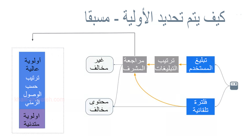 تسلسل سير عمل التبليغات لموظفين الفيسبوك