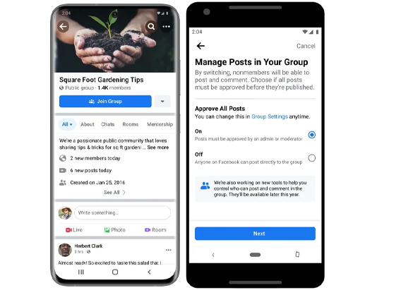 ايضا هناك ميزة يشملها هذا التحديث الجديد تسمح لمدير المجموعة اختيار من يستطيع ان يترك تعليق او ينشر داخل المجموعة. تبدو هذه الميزة مفيدة لاختيار الاعضاء المميزين ولتصفية المجموعة من المنشورات الغير مناسبة.