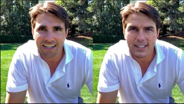 على اليسار المقلد مارك فيشر، على اليمين شخصية توم كروز من خلال التزييف العميق